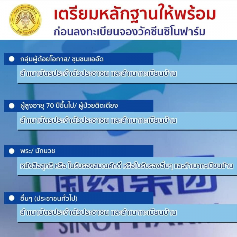 เตรียมหลักฐานให้พร้อม ก่อนลงทะเบียนจองวัคซีนซิโนฟาร์ม!