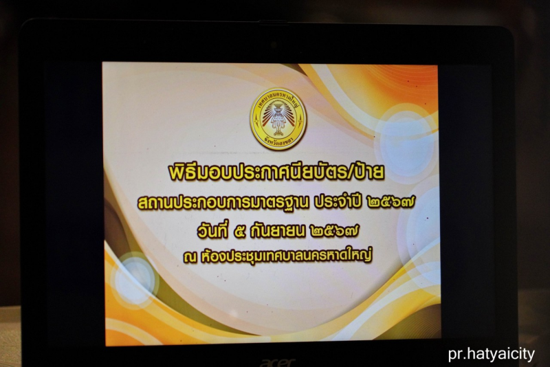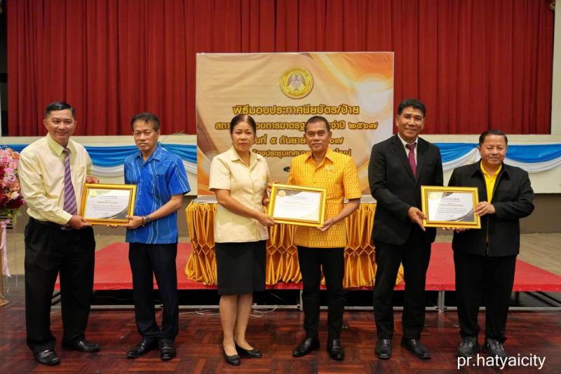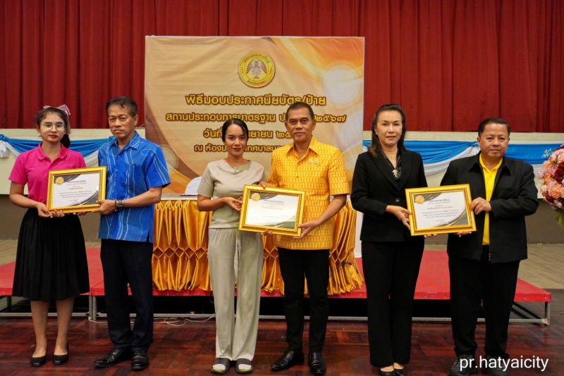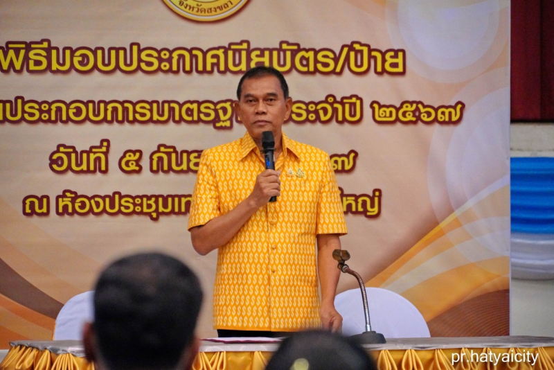 เทศบาลนครหาดใหญ่ มอบประกาศนียบัตร/ป้าย ให้แก่สถานประกอบการมาตรฐาน ประจำปี 2567