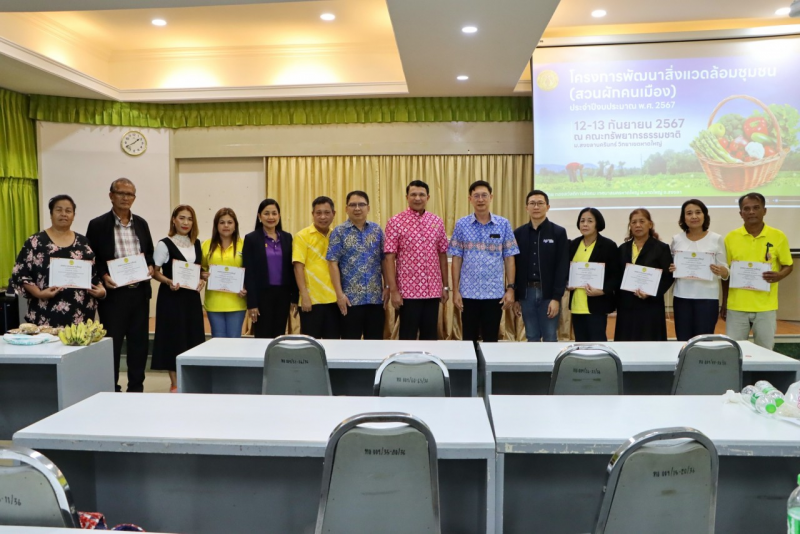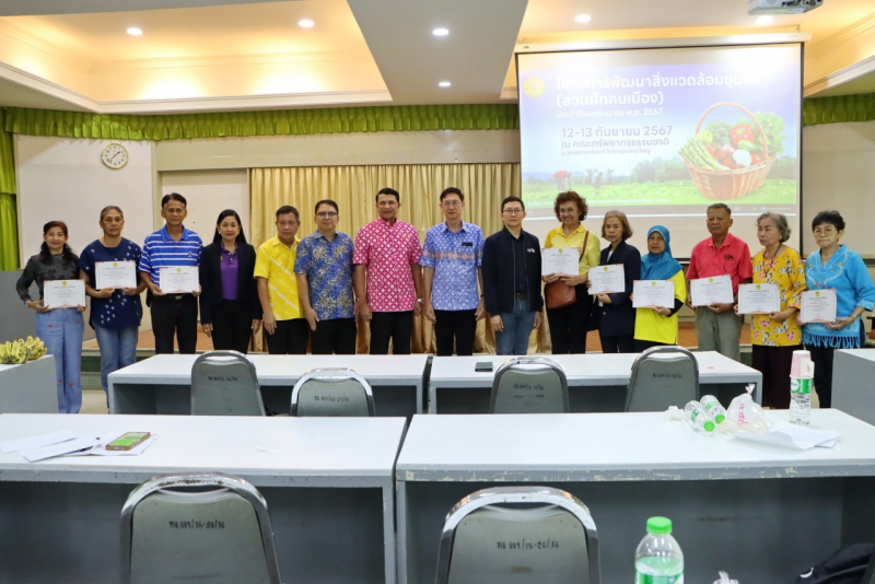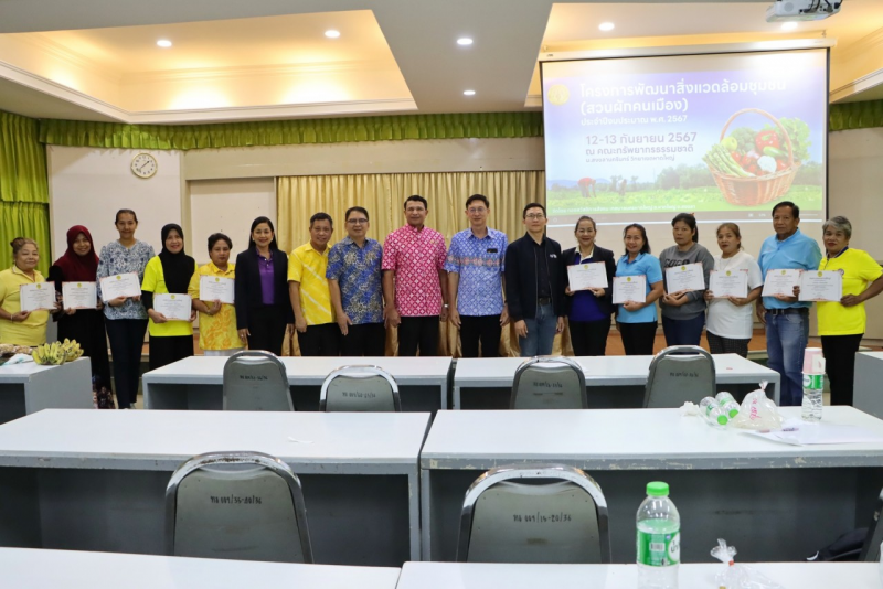 พล.ต.ท.สาคร ทองมุณี นายกเทศมนตรีนครหาดใหญ่ เป็นประธาน พร้อมด้วย รองศาสตราจารย์ ดร.ไชยวรรณ วัฒนจันทร์ คณบดีคณะทรัพยากรธรรมชาติ รองศาสตราจารย์ ดร.นริศ ท้าวจันทร์ รองคณบดีฝ่ายวิจัย นวัตกรรมและพันธกิจเพื่อสังคม คณะทรัพยากรธรรมชาติ รองปลัดเทศบาลฯ และตัวแทนชุมชน ร่วมในพิธี บันทึกข้อตกลงว่าด้วยความร่วมมือ MOU และมอบประกาศนียบัตรด้านบริการวิชาการ ถ่ายทอดงานวิจัย นวัตกรรมและเทคโนโลยีเพื่อพัฒนาสิ่งแวดล้อมชุมชน (สวนผักคนเมือง)