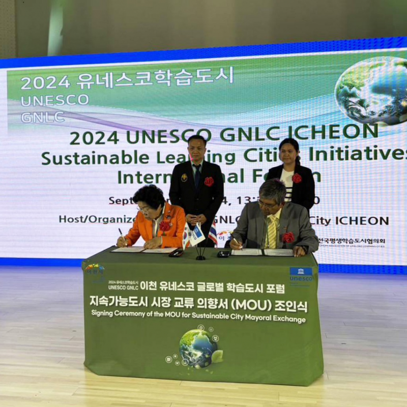 พล.ต.ท.สาคร ทองมุณี นายกเทศมนตรีนครหาดใหญ่ มอบหมายให้ รศ.ดร.วิชัย กาญจนสุวรรณ รองนายกเทศมนตรี นายสมพร เหมืองทอง นักวิชาการสุขาภิบาลชำนาญการ และ นางสาวเสาวภัคย์ ธรรมเสน่ห์ นักวิชาการสุขาภิบาลชำนาญการ ส่วนช่างสุขาภิบาล สำนักช่าง เข้าร่วมประชุม “2024 UNESCO GNLC ICHEON Sustainable Learning Cities Initiatives International Forum” ระหว่างวันที่ 11 – 12 กันยายน 2567 ณ เมือง Icheon ประเทศเกาหลีใต้ ภายในงานดังกล่าวได้มีการทำบันทึกข้อตกลงร่วมกัน ระหว่างเมือง Icheon กับเมืองหาดใหญ่ เพื่อส่งเสริมความร่วมมือระหว่างประเทศ และการทำงานที่เป็นประโยชน์ร่วมกันทั้ง 2 ฝ่าย เพื่อมุ่งสู่เมืองแห่งการเรียนรู้ที่ยั่งยืน และในงานดังกล่าว รศ.ดรวิชัย กาญจนสุวรรณ ได้ร่วมบรรยายในช่วง Mayor Session ร่วมกับ คุณ Kim Kyung-Hee นายกเทศมนตรีเมือง Icheon คุณ Milena Paola Quirog นายกเทศมนตรี เมือง La Paz ประเทศเม๊กซิโก และ คุณ Mikhaii Krasnov นายกเทศมนตรีเมือง Tunja ประเทศโคลัมเบีย ทั้งนี้ รศ.ดรวิชัย กาญจนสุวรรณ ได้บรรยายเรื่อง Hatyai Green City ซึ่งได้รับเสียงชื่นชมจากนายกเทศมนตรีทั้ง 3 เมือง ที่เข้าร่วมบรรยาย และให้ความสนใจที่จะแลกเปลี่ยนเรียนรู้ โดยเฉพาะในด้านการจัดการคุณภาพอากาศ การดำเนินการด้านการลดก๊าซเรือนกระจก เป็นต้น
