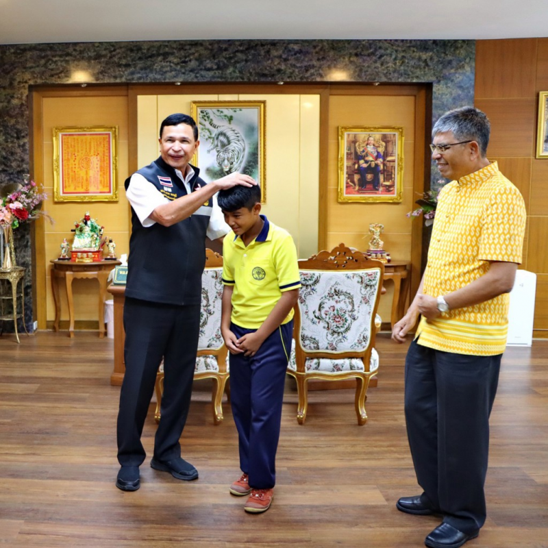 1 ตุลาคม 2567 นายธานินทร์ แก้วจุรัตน์ ผู้อำนวยการสถานศึกษาโรงเรียนเทศบาล 5 (วัดหาดใหญ่) ได้นำ เด็กชายศรัณย์ อ้วนเส้ง พร้อมด้วย ครู ผู้ปกครองนักเรียน ร่วมเข้าพบ พล.ต.ท.สาคร ทองมุณี นายกเทศมนตรีนครหาดใหญ่ รศ.ดร.วิชัย กาญจนสุวรรณ