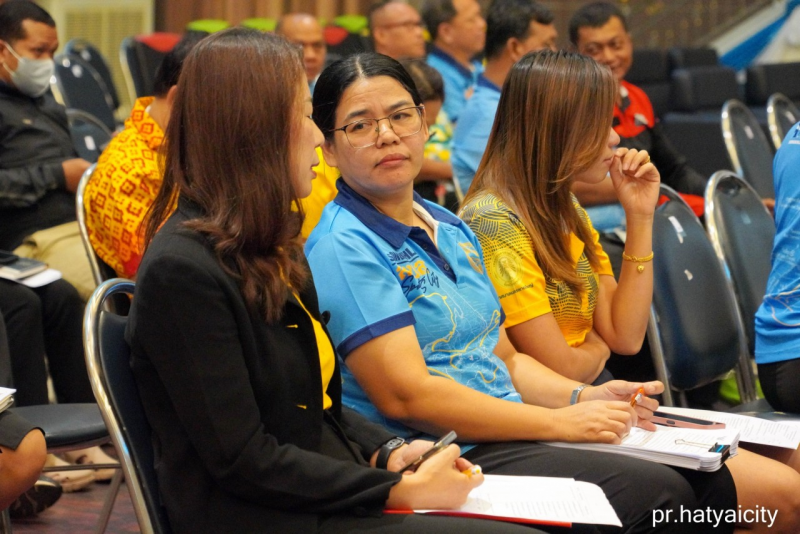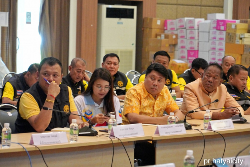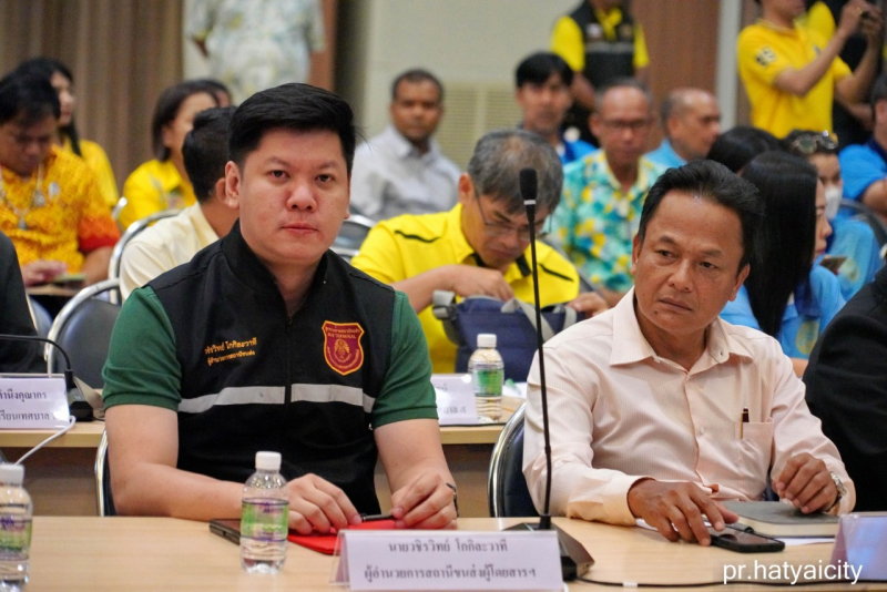 พร้อมเน้นย้ำเรื่องเฝ้าระวัง ป้องกัน พร้อมรับมือ ติดตามสถานการณ์หน้าฝน เพื่อความปลอดภัยของประชาชน ณ หอประชุมเทศบาลนครหาดใหญ่