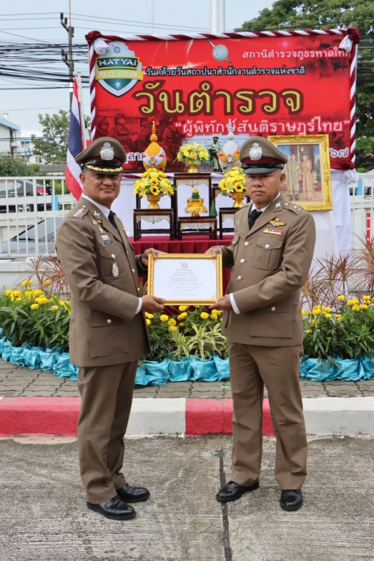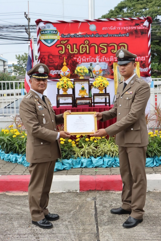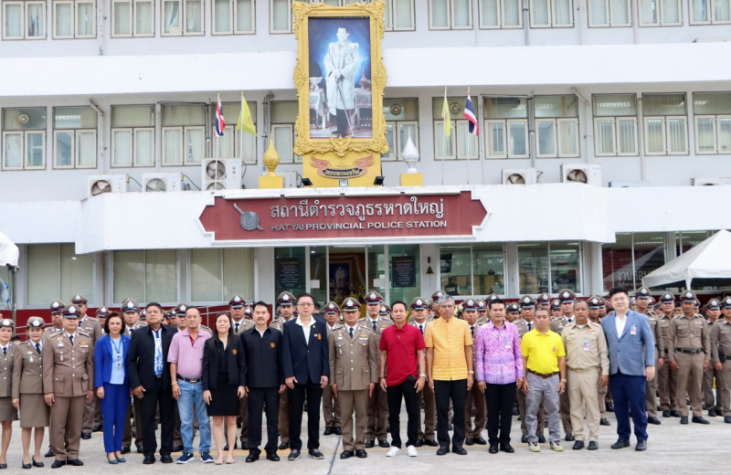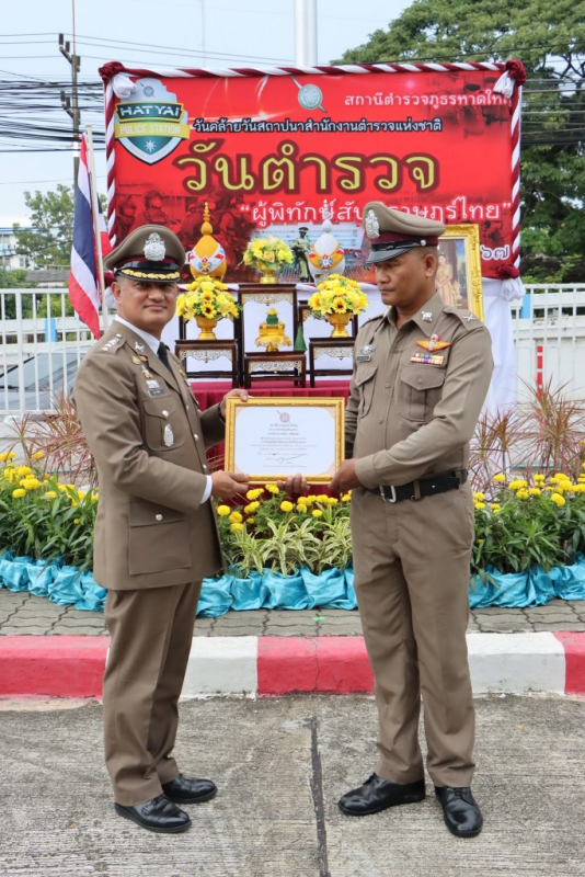 17 ตุลาคม 2567 พล.ต.ท.สาคร ทองมุณี นายกเทศมนตรีนครหาดใหญ่ มอบหมาย รศ.ดร.วิชัย กาญจนสุวรรณ รองนายกเทศมนตรีนครหาดใหญ่ พร้อมด้วย ข้าราชการตำรวจ ร่วมพิธี ในวันตำรวจ“ผู้พิทักษ์สันติราษฎร์ “ โดยมี พ.ต.อ.ภูมิ บาลทิพย์ ผู้กำกับการสถานีตำรวจภูธรหาดใหญ่ เป็นประธานในพิธี