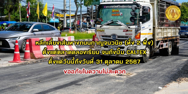 แจ้งหลีกเลี่ยงเส้นทางถนนกาญจนวนิช (ทั้ง 2 ฝั่ง) ตั้งแต่ตลาดคลองเรียน จนถึงปั๊ม CALTEX ตั้งแต่วันนี้ถึงวันที่ 31 ตุลาคม 2567 เนื่องจากดำเนินโครงการปรับปรุงผิวจราจรแบบแอสฟัสท์คอนกรีต ถนนกาญจนวนิช ตั้งแต่แยกคลองเรียนจนถึงสุดเขตเทศบาลทางทิศใต้ (ช่วงที่ 2) ตั้งแต่วันที่ 16 – 31 ตุลาคม 2567 ปิดการจราจรถนนกาญจนวนิช 2 ช่อง (บริเวณเกาะกลางทั้ง2 ฝั่งขาเข้าและขาออก) จากสะพานข้ามคลองหน้าตลาดไปจนถึงหน้าตลาดกรีนเวย์ จะเหลือช่องจราจรซ้ายสุดทั้ง 2 ฝั่ง สามารถสัญจรไปมาได้ รถทางตรงที่มาจากหน้ามหาวิทยาลัยสงขลานครินทร์ ไม่สามารถเลี้ยวขวาเข้าถนนศรีภูวนารถได้ ส่วนรถที่มาจากถนนศรีภูวนารถจะบังคับเลี้ยวซ้ายเข้าถนนกาญจนวนิชได้อย่างเดียว ไม่สามารถเลี้ยวขวาเข้าถนนกาญจนวนิชได้