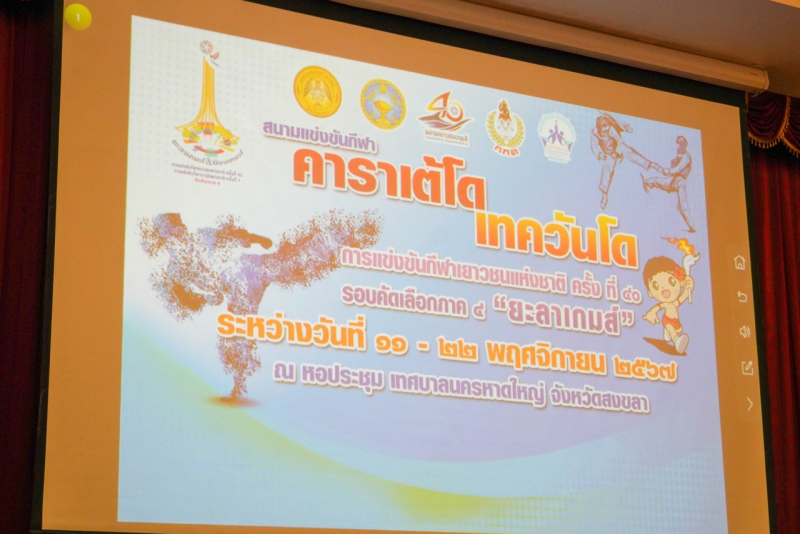 21 พฤศจิกายน 2567 นายเศวต เพชรนุ้ย รองผู้ว่าราชการจังหวัดสงขลา เข้าชมและให้กำลังใจนักกีฬาในการแข่งขันกีฬา คาราเต้โด เทควันโด การแข่งขันกีฬาเยาวชนแห่งชาติ ครั้งที่ 40 รอบคัดเลือกภาค 4 “ยะลาเกมส์” พร้อมมอบเกียรติบัตรให้กับนักกีฬา โดยมี นายอาหมัด เบ็ญอาหลี รองนายกเทศมนตรีนครหาดใหญ่ พร้อมด้วยหัวหน้าส่วนราชการให้การต้อนรับ หอประชุมเทศบาลนครหาดใหญ่