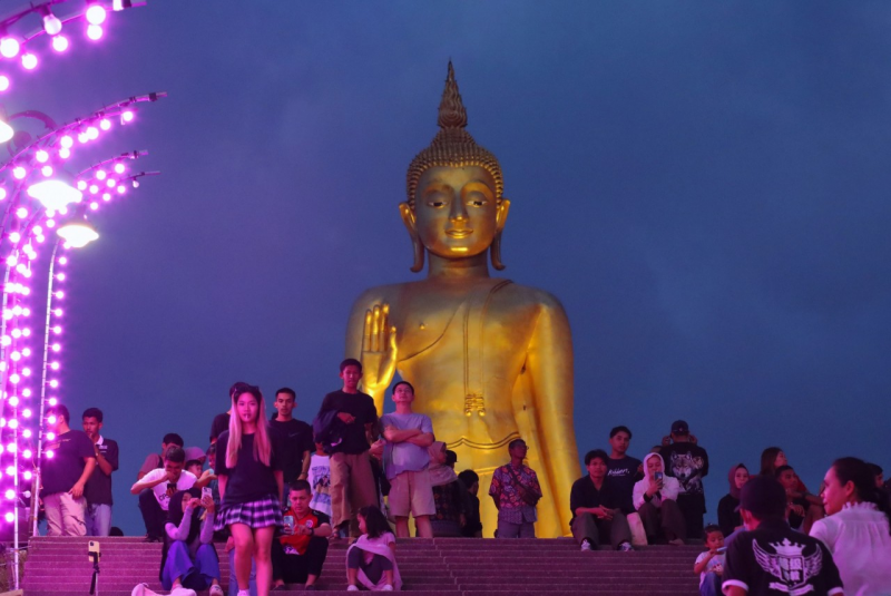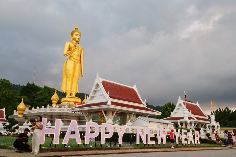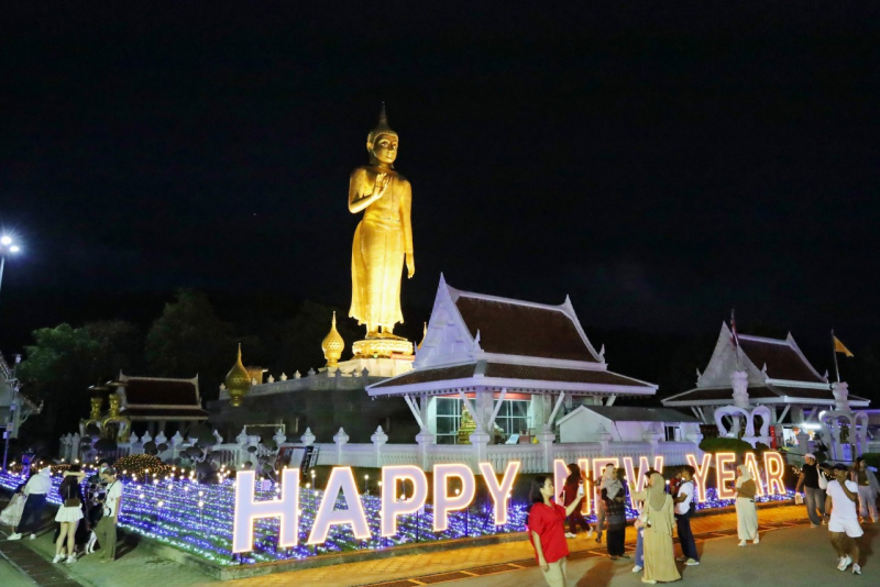 มาเช็คอิน มีมุมถ่ายรูปเก๋ๆ สวยๆ มากมายกับตึกที่ประดับไฟตระการตา พร้อมกับชมพลุต้อนรับปีใหม่ได้ทั้งในเมืองและลานพระพุทธมงคลมหาราช บนเขาสวนสาธารณะเทศบาล
