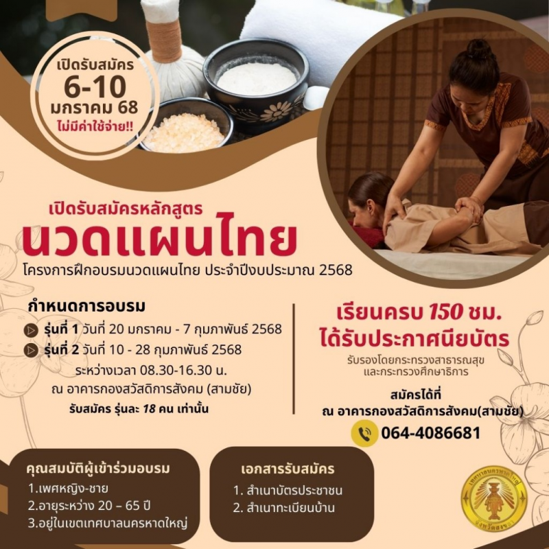 โครงการฝึกอบรมนวดแผนไทย ประจำปีงบประมาณ 2568