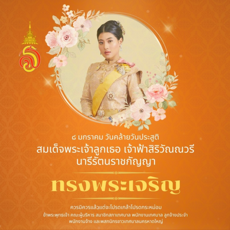 ๘ มกราคม วันคล้ายวันประสูติสมเด็จพระเจ้าลูกเธอ เจ้าฟ้าสิริวัณณวรี นารีรัตนราชกัญญาขอเชิญชวนประชาชนร่วมลงนามถวายพระพร สมเด็จพระเจ้าลูกเธอเจ้าฟ้าสิริวัณณวรี นารีรัตนราชกัญญา เนื่องในโอกาสวันคล้ายวันประสูติวันที่ ๘ มกราคม ๒๕๖๘ ผ่านระบบออนไลน์