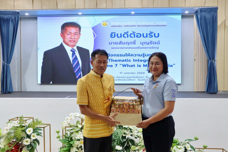 วรพัฒน์ Integration ประจำ Theme ที่ 7 (What is mass media?) เพื่อให้ผู้เรียนได้รับความรู้จากผู้มีประสบการณ์ตรง เรียนรู้ถึงการใช้สื่อให้เป็นประโยชน์ ส่งเสริม การเรียนรู้ที่มีความหมายต่อชีวิตของผู้เรียน