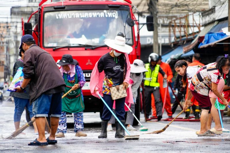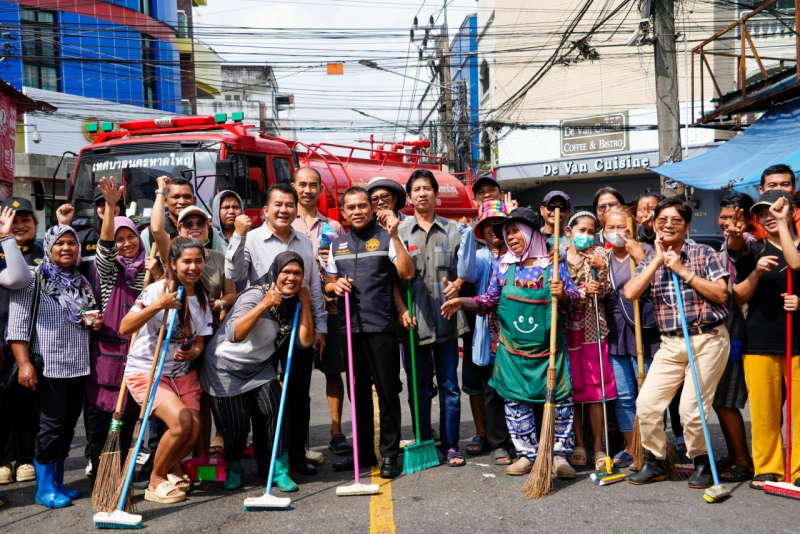 พล.ต.ท.สาคร ทองมุณี นายกเทศมนตรีนครหาดใหญ่ มอบหมาย นายอาหมัด เบ็ญอาหลีรองนายกเทศมนตรีนครหาดใหญ่ พร้อมด้วย สมาชิกสภาเทศบาล เจ้าหน้าที่เทศกิจ พ่อค้า-แม่ค้า ร่วมลงพื้นที่ ทำความสะอาด ด้วยการถูพื้น และล้างถนน จัดเก็บกวาดขยะ แก้ไขปัญหาเรื่องขยะ ปรับปรุงภูมิทัศน์ ให้มีความเรียบร้อยสวยงามมากยิ่งขึ้น