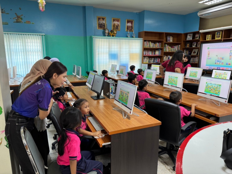 การเรียนรู้แนวคิดพื้นฐานคอมพิวเตอร์เบื้องต้น สำหรับเด็กปฐมวัย ณ ศูนย์การเรียนรู้ ICT เทศบาลนครหาดใหญ่ โดยนักเรียนจากศูนย์ศูนย์พัฒนาเด็กเล็กมัสยิดหมัดยาเม๊าะมุสลิม