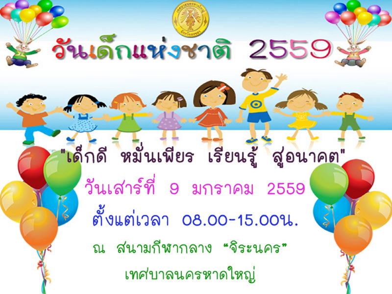 เทศบาลนครหาดใหญ่ ขอเชิญชวนน้องๆหนูๆ ร่วมกิจกรรมงานวันเด็กแห่งชาติ ประจำปี 2559