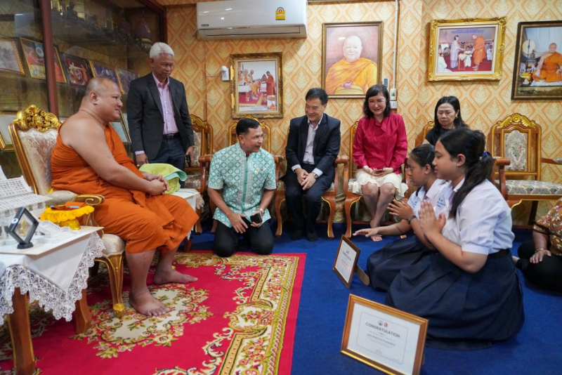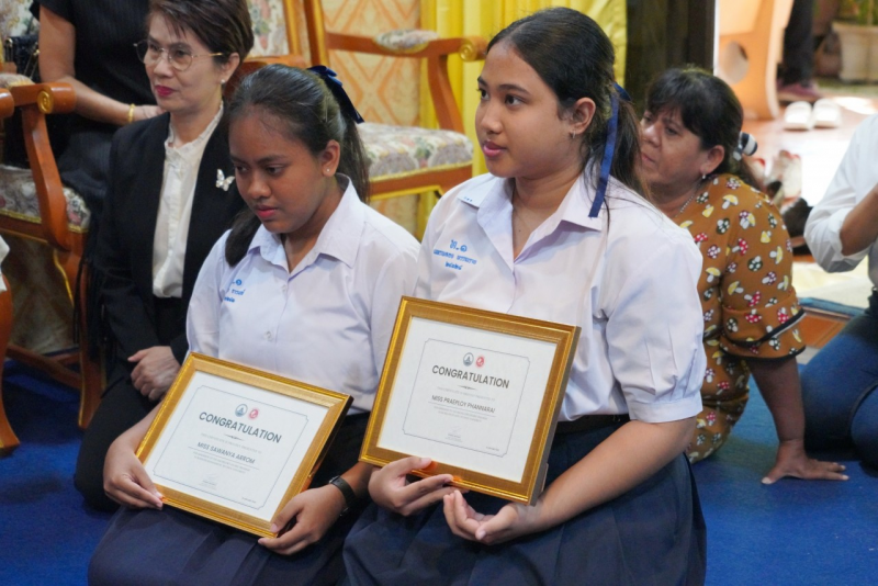 โดยมี พล.ต.ท.สาคร ทองมุณี นายกเทศมนตรีนครหาดใหญ่ พร้อมด้วย นายณรงค์ รัฐภูมิภักดิ์ ผู้อำนวยการโรงเรียนเทศบาล 1 (เอ็งเสียงสามัคคี) และหอการค้าจังหวัดสงขลา ร่วมแสดงความยินดี ในการมอบทุนการศึกษากับนักเรียนทั้งสองคน พร้อมผู้ปกครองน้อมรับโอวาทจากเจ้าอาวาสฯ