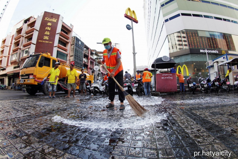 เทศบาลนครหาดใหญ่ Big Cleaning Day ดำเนินการพัฒนา ฉีดล้าง ทำความสะอาดพื้นที่