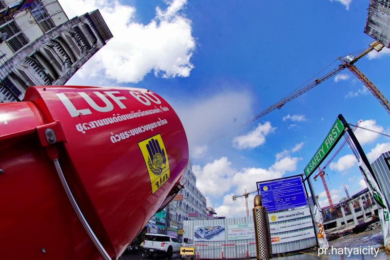 เทศบาลนครหาดใหญ่ ดำเนินการ นำรถน้ำฉีดพ่นหมอก/ละอองน้ำ เพื่อควบคุมฝุ่นในการก่อสร้าง เพื่อลดปริมาณฝุ่น ให้กับประชาชน ด้วยสถานการณ์ค่าฝุ่นละออง PM 2.5 บริเวณ ตลาดพลาซ่า อ.หาดใหญ่ จ.สงขลา