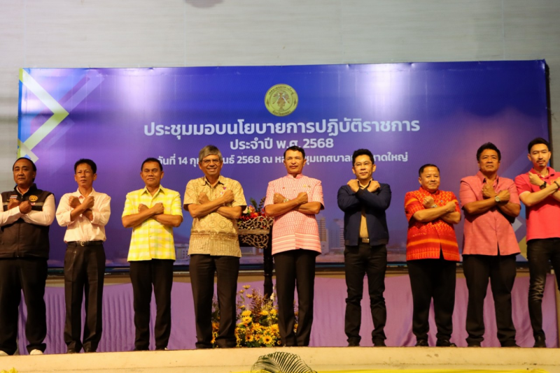 โดย พล.ต.ท.สาคร ทองมุณี นายกเทศมนตรีนครหาดใหญ่ ได้มอบนโยบายการปฏิบัติงาน ประจำปี งบประมาณ 2568 และแนวทางการปฏิบัติงานให้แก่พนักงานเทศบาล ในเรื่องการปฏิบัติงานของผู้ใต้บังคับบัญชา ให้เป็นไปตามนโยบายที่ทางคณะบริหารฯได้กำหนดไว้ โดยยึดหลักความถูกต้อง ระเบียบและข้อกฎหมายของราชการ รวมถึงการให้บริการประชาชน ให้เน้นการบริการเชิงรุก สุภาพ และเป็นมิตรกับประชาชน มีความรับผิดชอบต่อหน้าที่ที่ได้รับมอบหมาย
