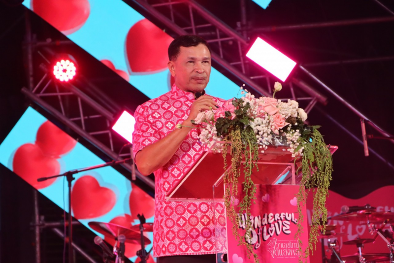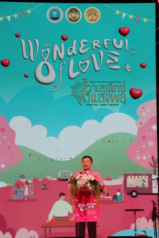 เทศบาลนครหาดใหญ่ ร่วมกับสำนักงานการท่องเที่ยวและกีฬาจังหวัดสงขลา ภายใต้งบพัฒนาจังหวัดสงขลา โดย พล.ต.ท.สาคร ทองมุณี นายกเทศมนตรีนครหาดใหญ่ กล่าวต้อนรับ ในพิธีเปิดงาน Wonderful of Love วาเลนไทน์ใต้แสงพลุ