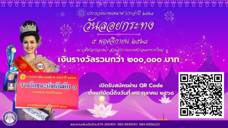 เทศบาลนครหาดใหญ่ เชิญร่วมประกวด “นางนพมาศ ประจำปี 2568” ชิงเงินรางวัลรวมกว่า 200,000 บาท